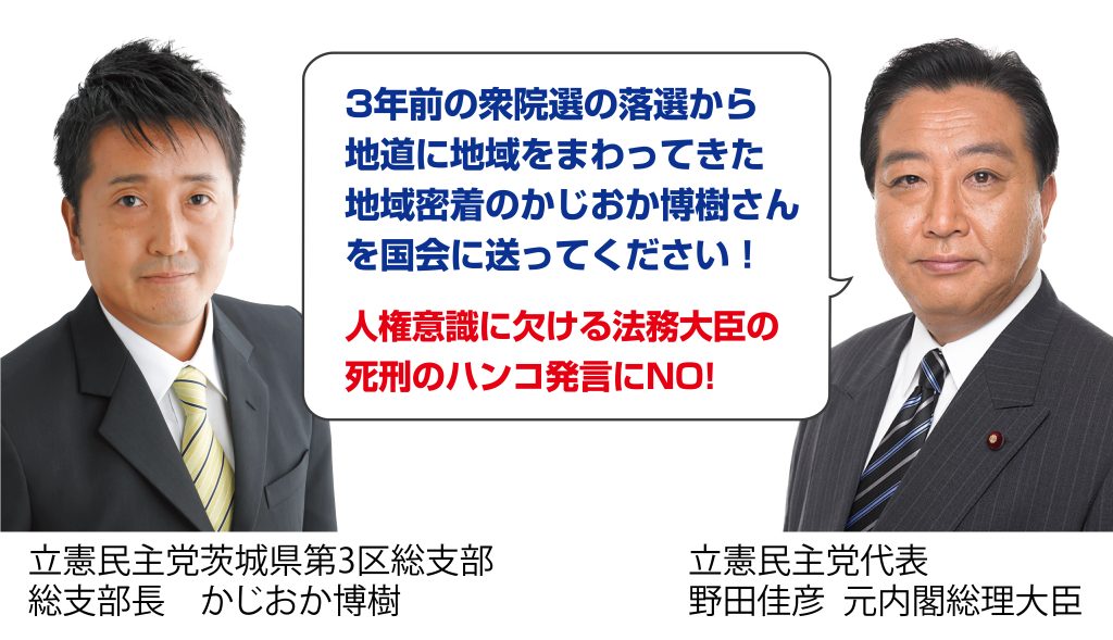 そんな中、命の尊厳を無視した「法務大臣は死刑のハンコを押すだけの地味な仕事」という発言の報道を耳にし、0歳の子を持つ一人の父親として、強い憤りを憶え、もう一度、私が立ち上がらなければいけないという強い使命感にかられ、再チャレンジを決意しました。