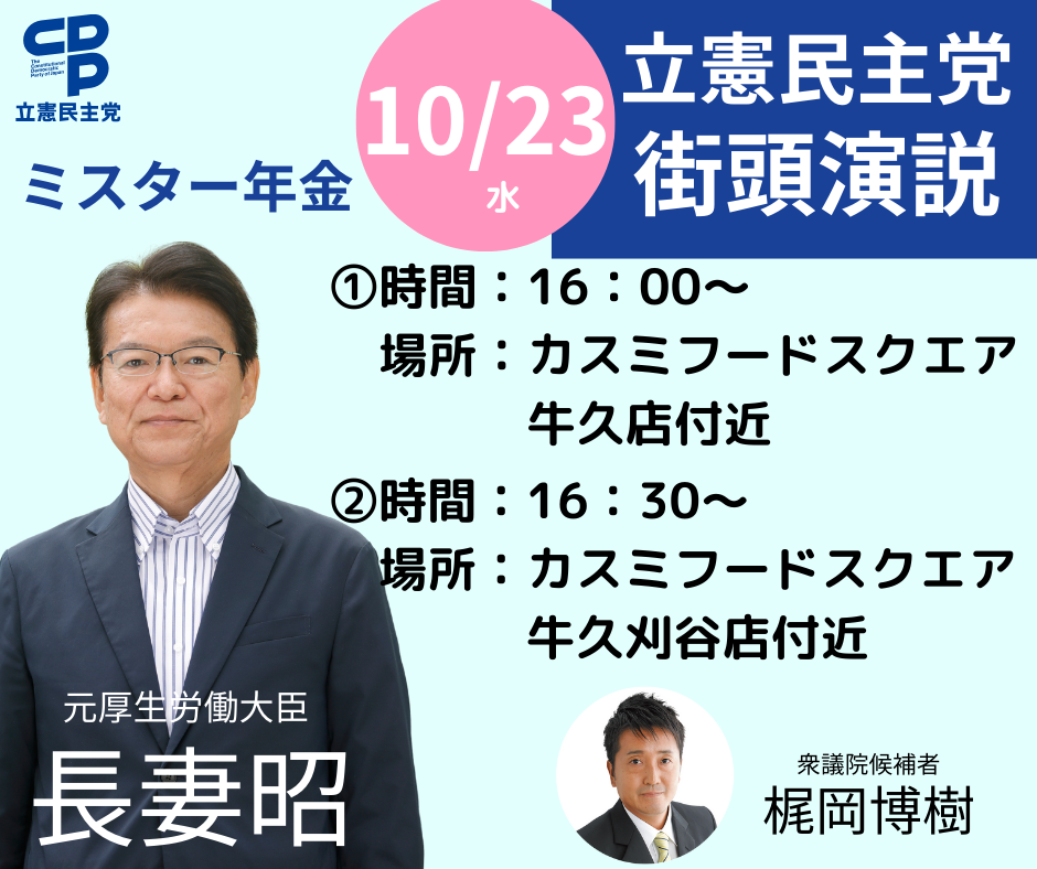 | 2024年10月15日 | 19時に牛久事務所で出陣式を開催します |